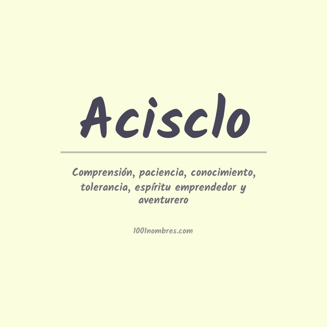 Acisclo acisclo es un nombre de origen griego que significa "el valiente". Se deriva de la palabra 'akis', que significa "valiente" o "fuerte". Es un nombre masculino usado principalmente en España.