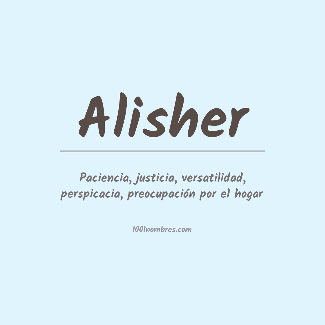 Alisher alisher es un nombre de origen árabe que significa "el que posee la grandeza y la fuerza".