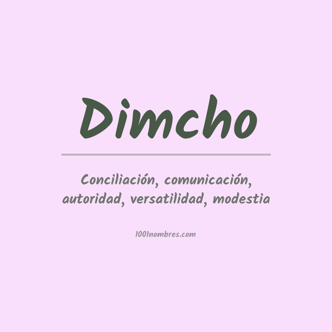 Dimcho dimcho es un nombre masculino búlgaro que se deriva del nombre griego Dimitrios. Se traduce literalmente como "seguidor de Demiurgo", una referencia a la figura de la mitología griega Demeter, diosa de la agricultura, la fertilidad y la naturaleza. Otra interpretación posible es "amante del mundo".