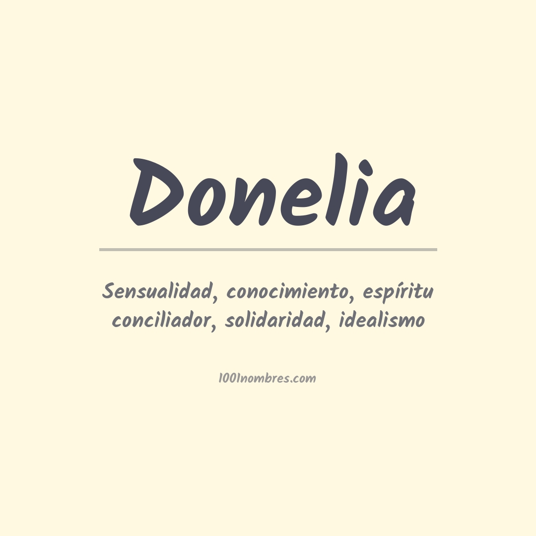 Donelia donelia es un nombre femenino de origen latino que significa "dama de la luz". Está relacionado con el nombre Donatello, un término proveniente del italiano antiguo y compuesto por dos partes: donna, que significa "mujer" o "señora", y tellus, que se traduce como "tierra" o "mundo". Por lo tanto, la combinación de estos dos elementos significa literalmente "señora del mundo" o "luz del mundo".