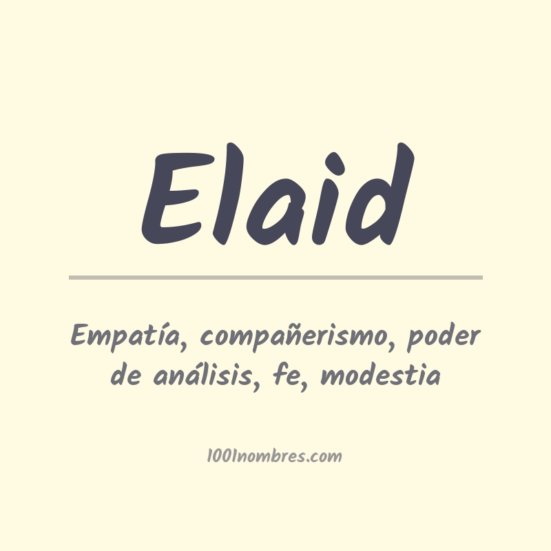 Elaid elaid significa "el que desea la libertad". Es un nombre de origen irlandés y celta. Elaid es un nombre masculino que significa "la persona que desea ser libre y busca su propia independencia".
