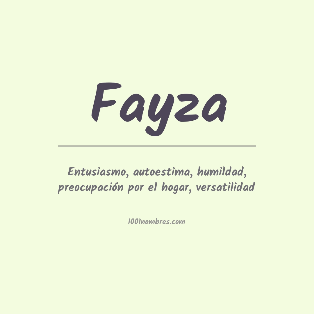 Fayza fayza es un nombre árabe femenino que significa 'triunfante'.