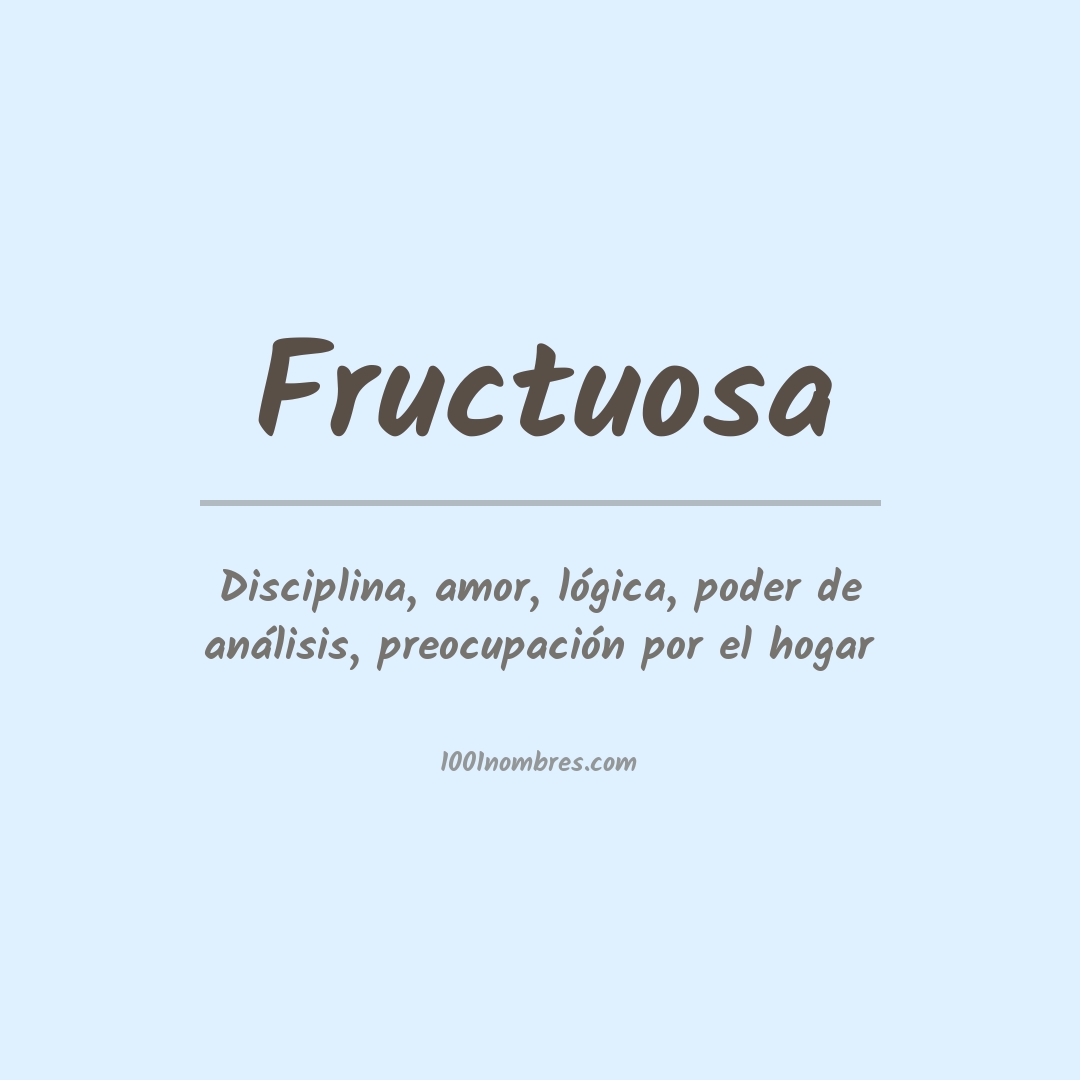 Fructuosa fructuosa significa "fructífero", "frutal" o "lleno de frutos". Se asocia con la fertilidad, la abundancia y la prosperidad.