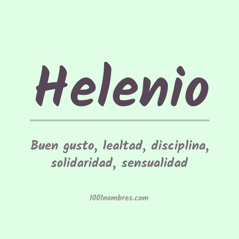Helenio helenio significa "el que viene de Helena". Es un nombre masculino de origen griego, que se deriva de la palabra helénica "elen" que significa "rayo de luz". El nombre Helenio fue muy popular en el Imperio Romano debido a su asociación con Helena de Troya. Es un nombre comúnmente usado por los católicos.