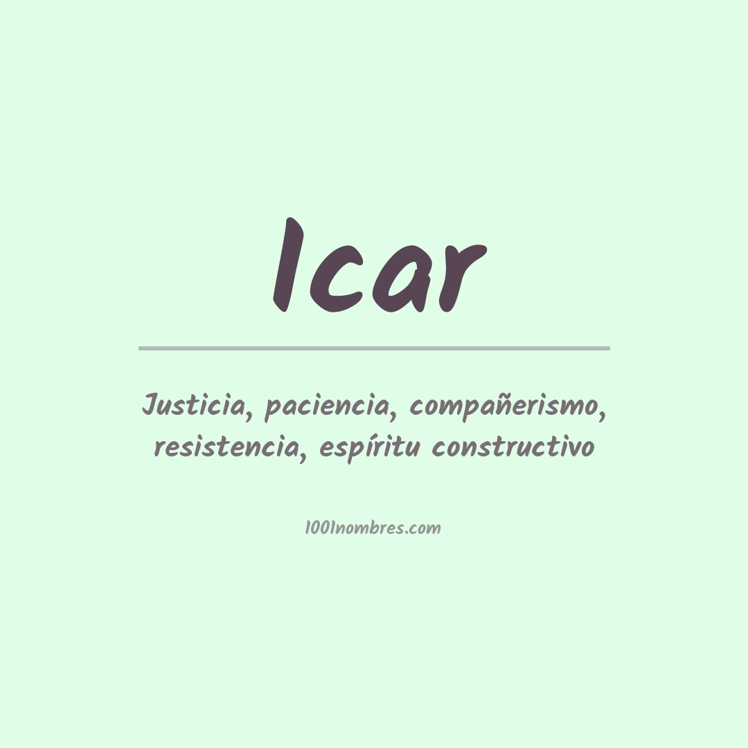 Icar icar es un nombre de origen griego que significa "el vuelo". Está relacionado con el mito del joven Icaro, hijo de Dédalo en la mitología griega, quien intentó volar cerca del Sol con alas de cera.