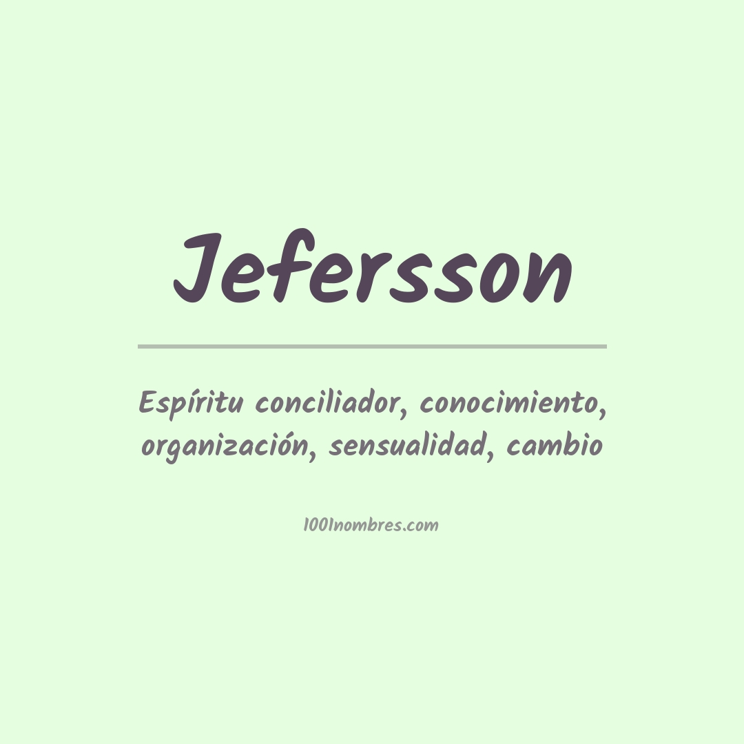 Jefersson jefersson significa "el hijo del divino líder". Está formado por dos partes: el nombre de pila Jef (que deriva del nombre hebreo Yefet, que significa "divino líder") y el sufijo "-son" que se añade al final para indicar que es una relación paternal.