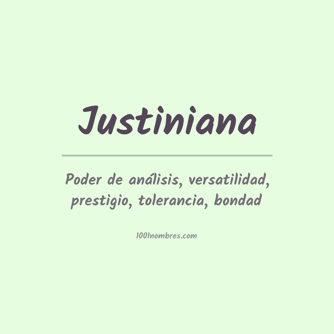 Justiniana justiniana significa "justo o justa". Se deriva del latín Iustinus, que proviene del nombre romano Iustus, que se traduce como "justo".