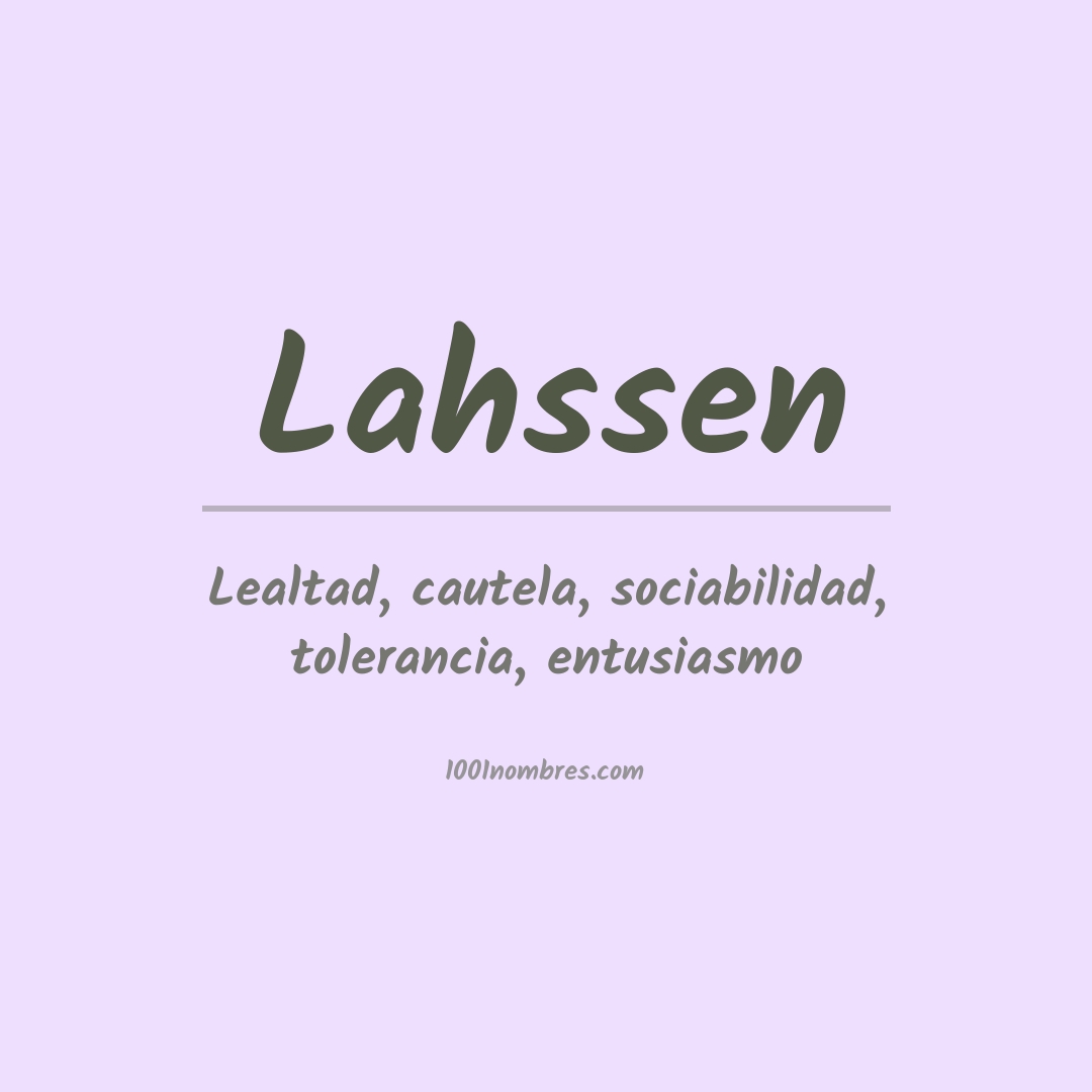Lahssen lahssen se deriva del nombre árabe Lisan, que significa "lengua". El nombre es una forma abreviada de la palabra árabe para una persona que es elocuente y capaz de hablar con facilidad.