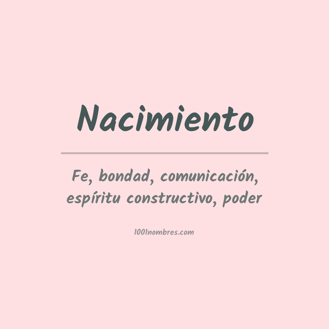 Nacimiento nacimiento es un nombre que proviene del latín y significa "nacer". Se usa para darle el nombre a la ceremonia de bienvenida a un niño recién nacido.