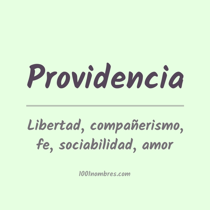 Providencia providencia se refiere a una ayuda divina, el acto de la divinidad de proveer provisión para los seres humanos. Se usa como nombre propio para hacer referencia al concepto de una ayuda divina en tiempos difíciles. El nombre Providencia también puede significar un lugar o región en particular que es bendecido con abundancia.