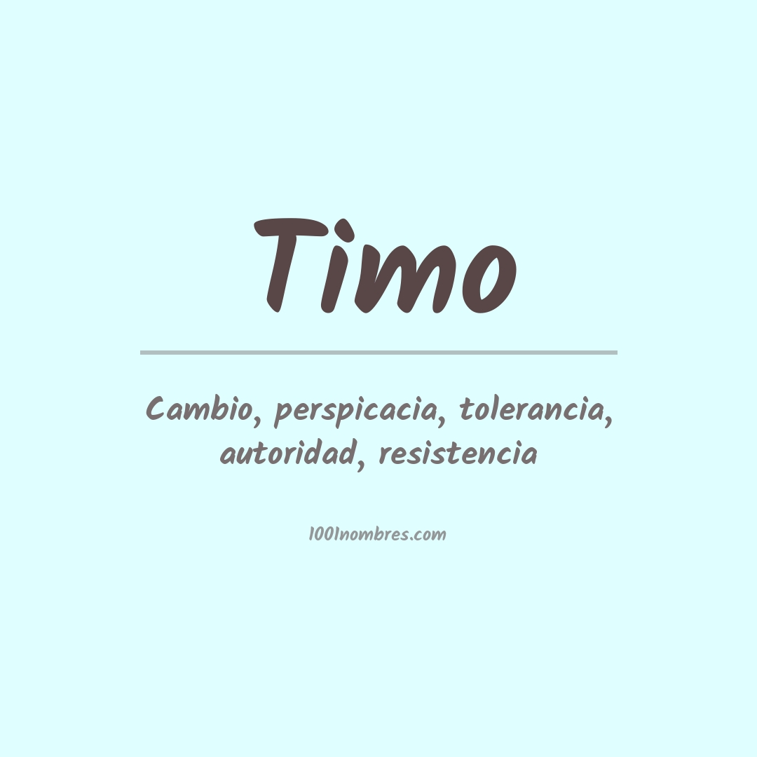 Timo el nombre Timo se deriva del griego antiguo θειμός (theimos) que significa "honor, respeto". También se asocia con el término inglés "timid", que significa tímido.