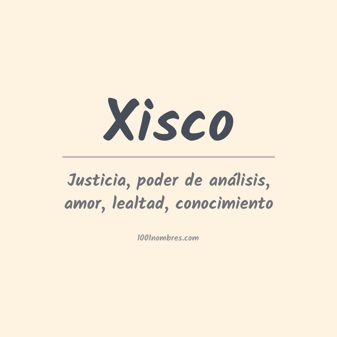 Xisco xisco es una variante española del nombre masculino propio Francisco. Se deriva del nombre latino Franciscus, que significa "hombre libre" o "guerrero libre". Es un nombre comúnmente usado en España, Portugal y América Latina.