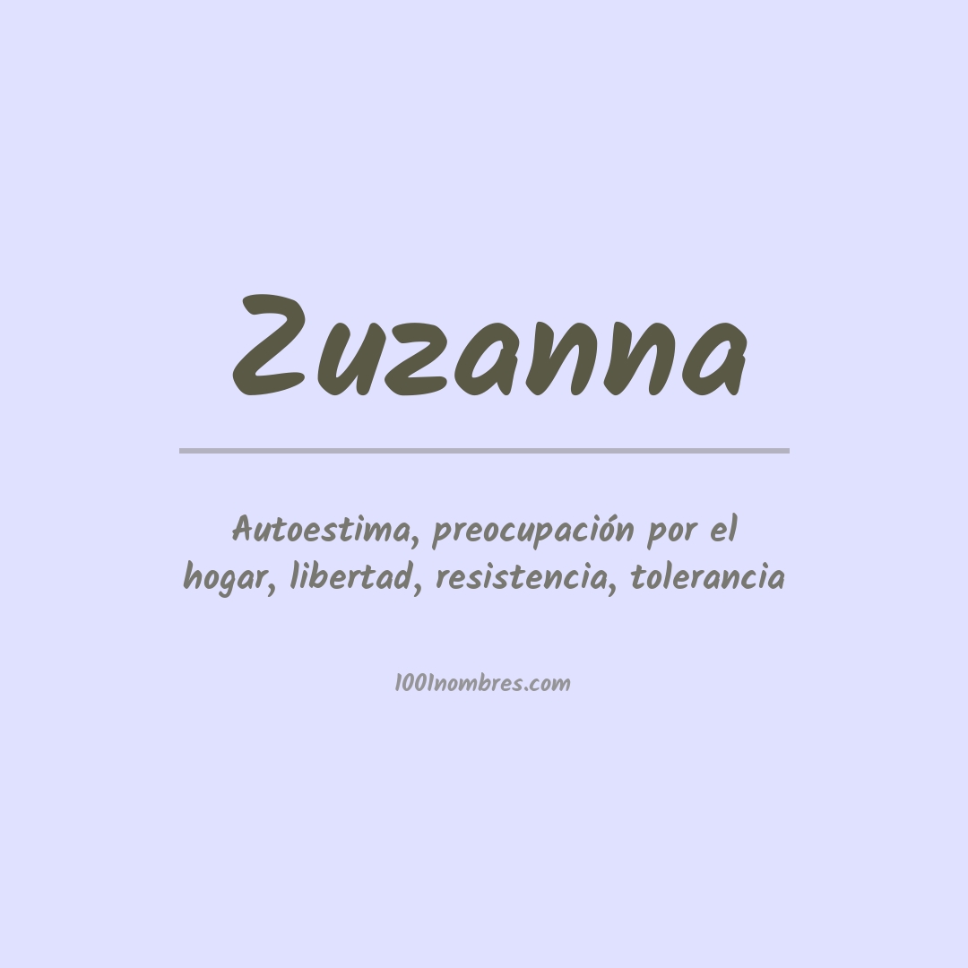 Zuzanna zuzanna significa "la que es brillante y bella". Se origina del nombre hebreo Susanna, que deriva de la palabra sús, que significa "lirio" o "rosa".